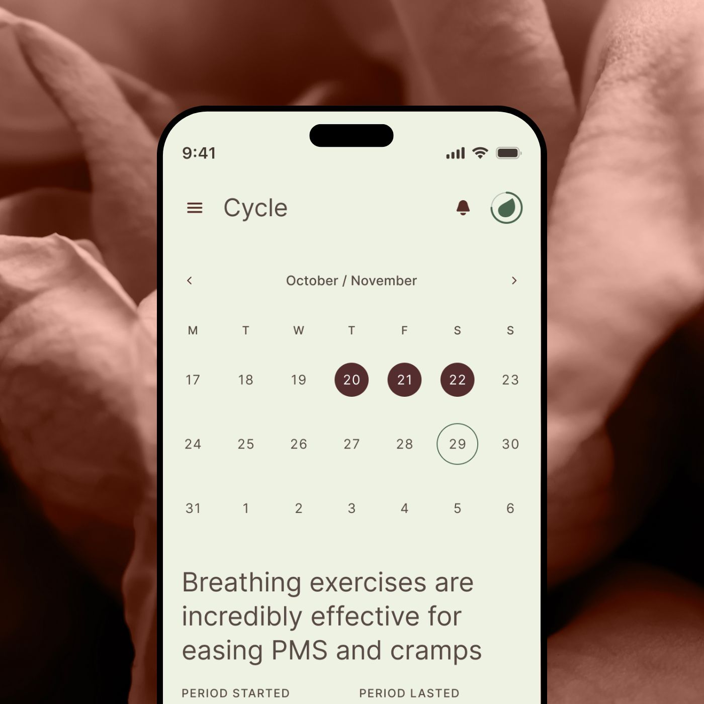 Your cycle is one of the best ways to learn about your body. With Petal, you can manage symptoms linked to hormonal changes by observing patterns in breast tissue and water content throughout your cycle.