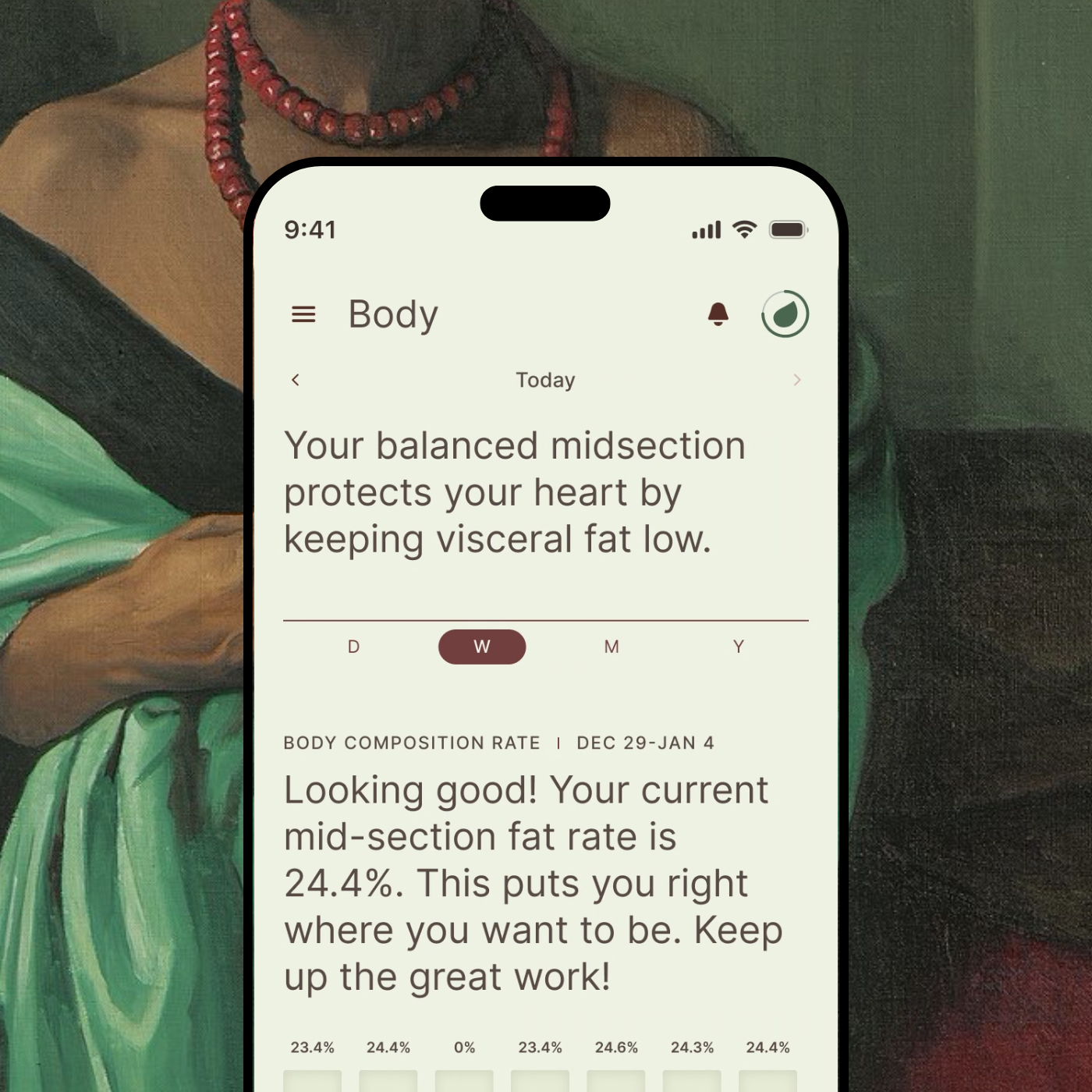 BMI is an outdated indicator of health in women. Petal measures things like midsection fat percentage and visceral fat index — both early indicators for disease — and provides personalized recommendations.